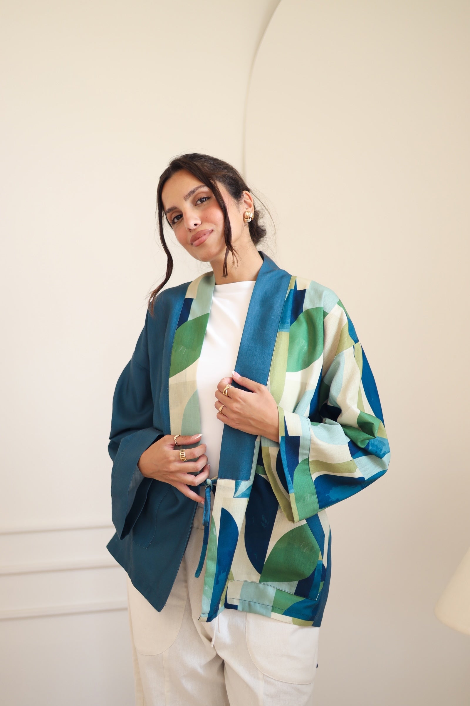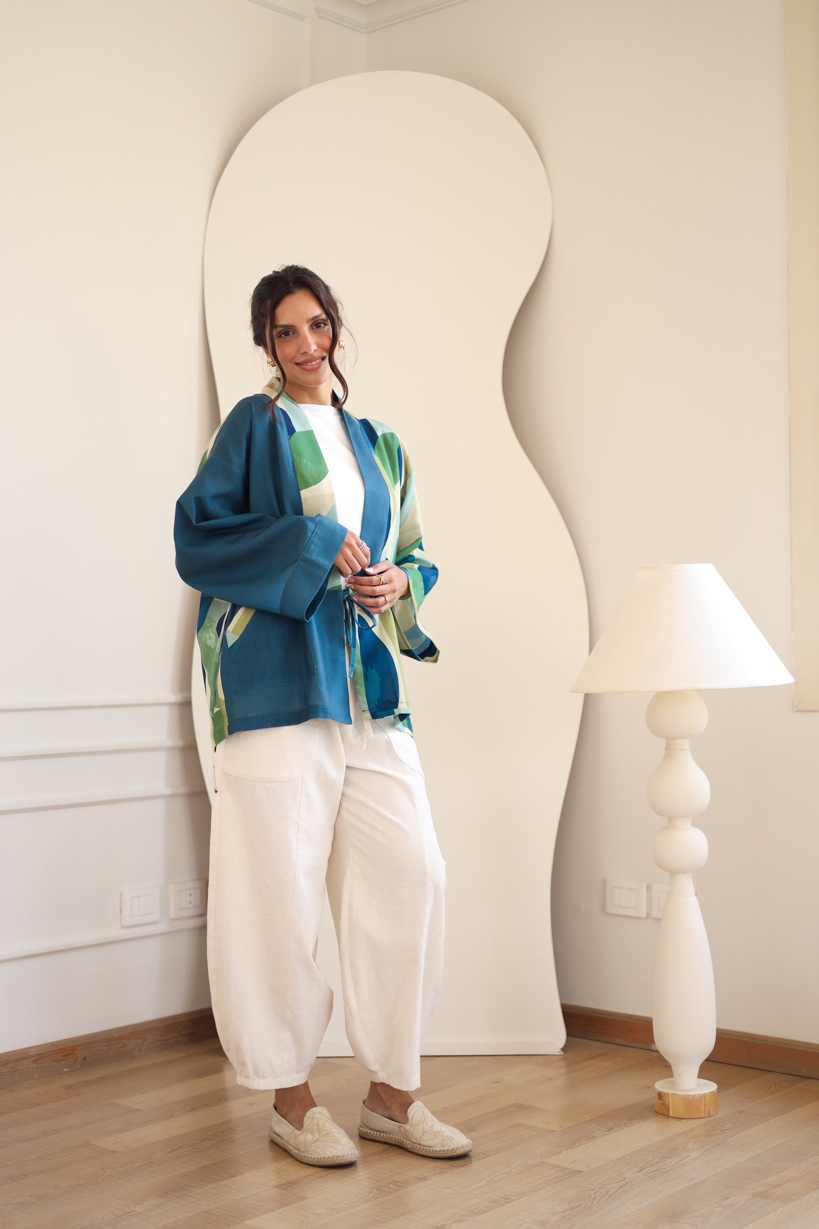 LINEN PRINTED KIMONO - BLUE